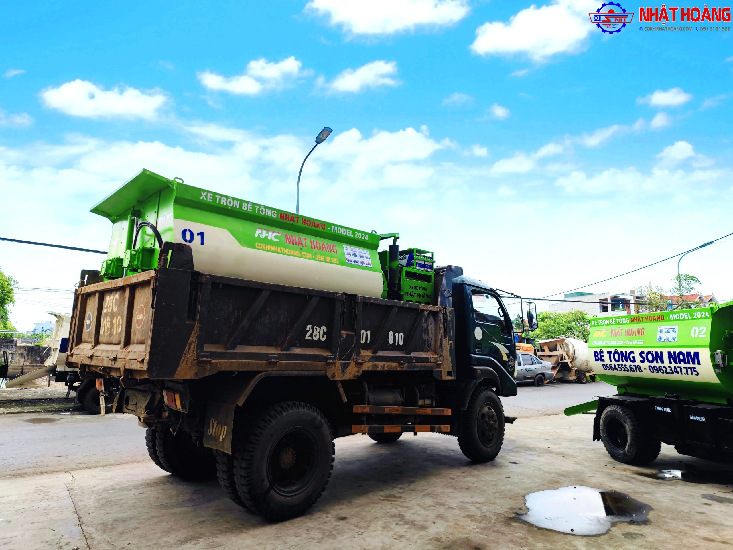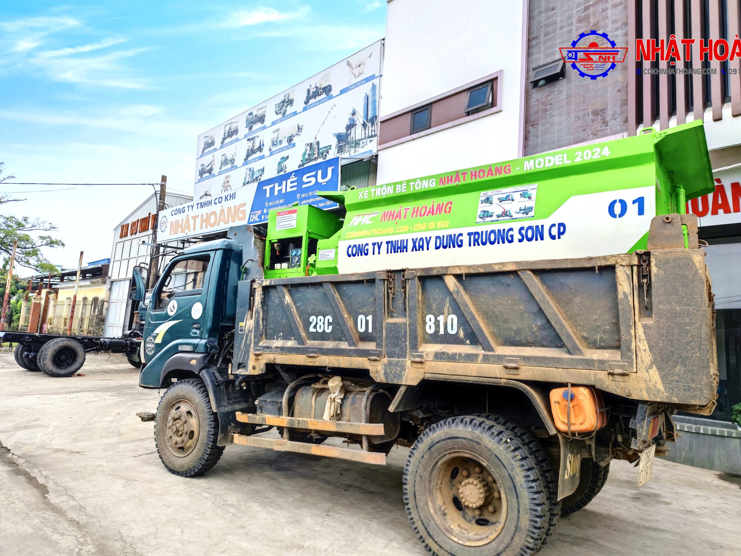 Cơ Khí Nhật Hoàng - Chuyên sản xuất bồn trộn bê tông 2 trục, xe công trình chở vật liệu, bồn bê tông tươi tự hành!